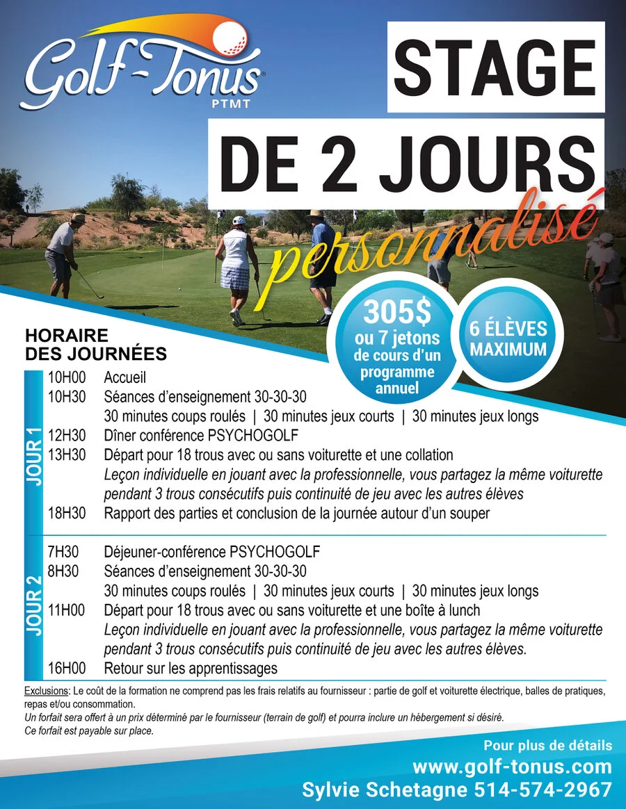 Vous trouverez l’horaire dans l’Agenda en Ligne de Golf-Tonus.com.